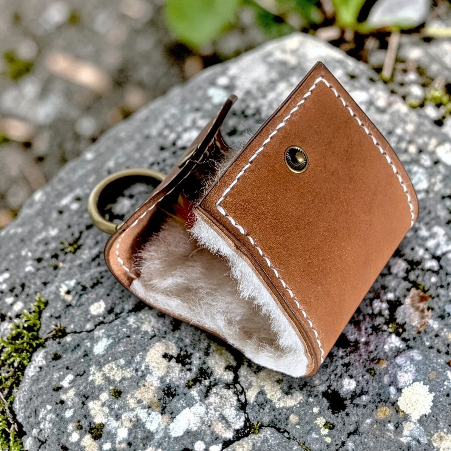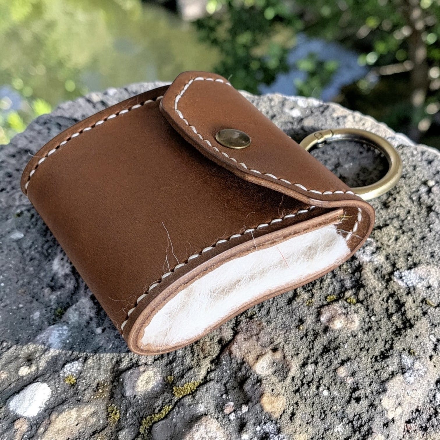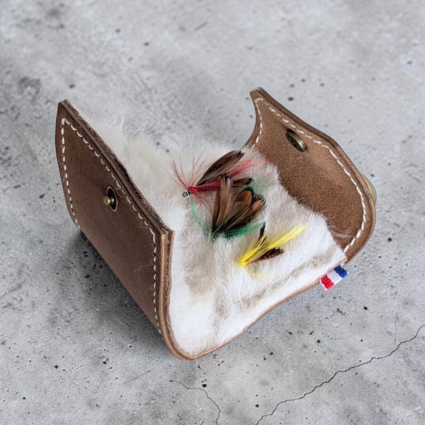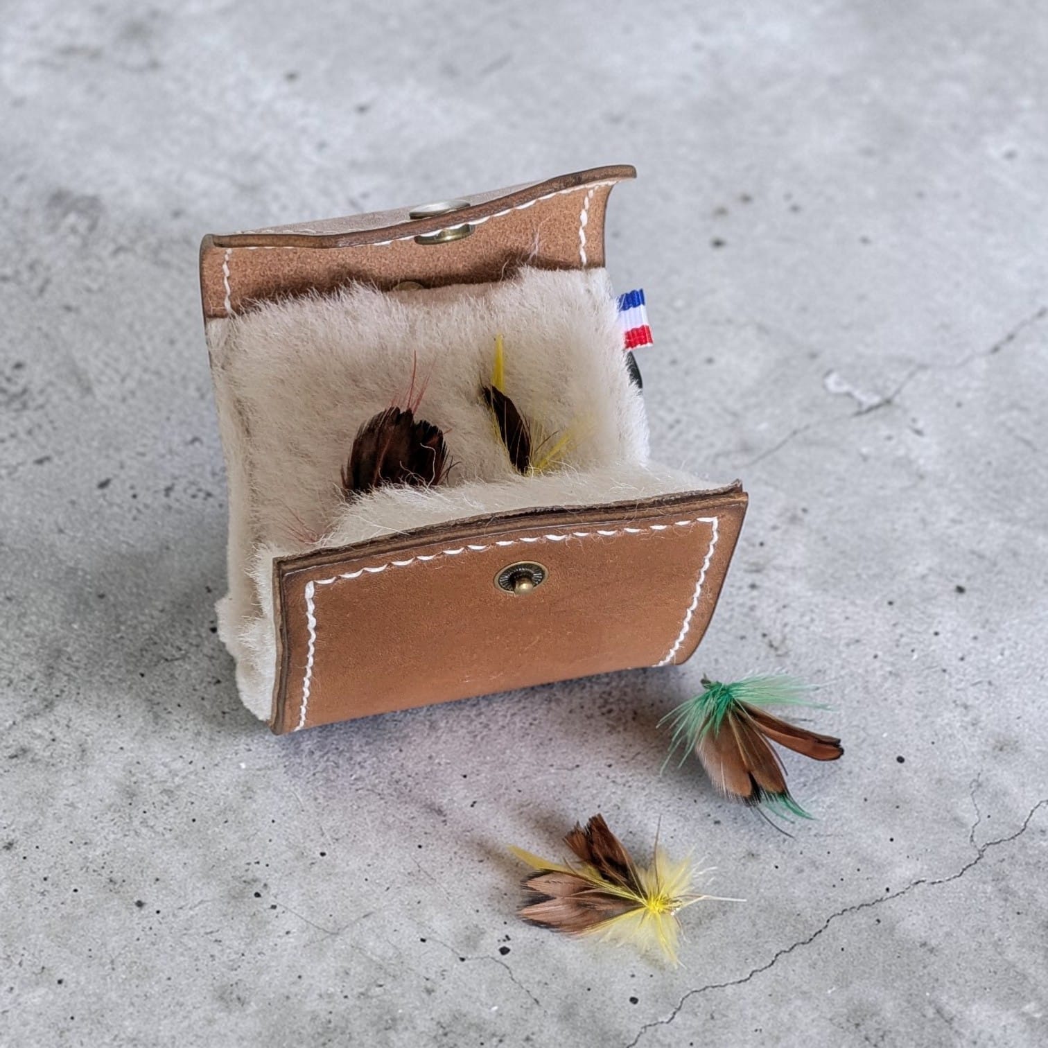 Étui en cuir véritable pour mouches de pêche – Fait main, avec laine de mouton – Personnalisable