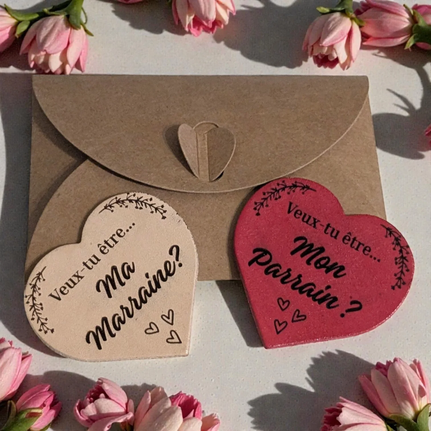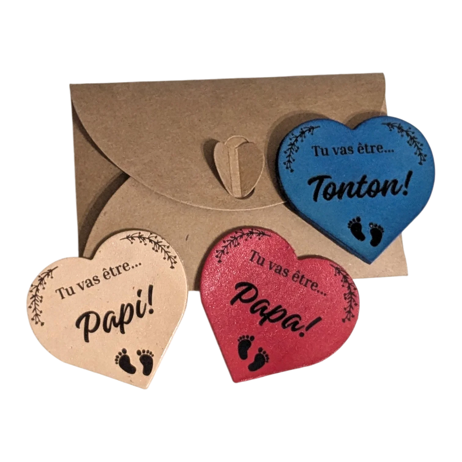 Idée originale pour ANNONCER l'ARRIVEE de BEBE ou CHOISIR SON TEMOIN, SON PARRAIN ou SA MARRAINE ! Coeur en cuir véritable, fait à la main.