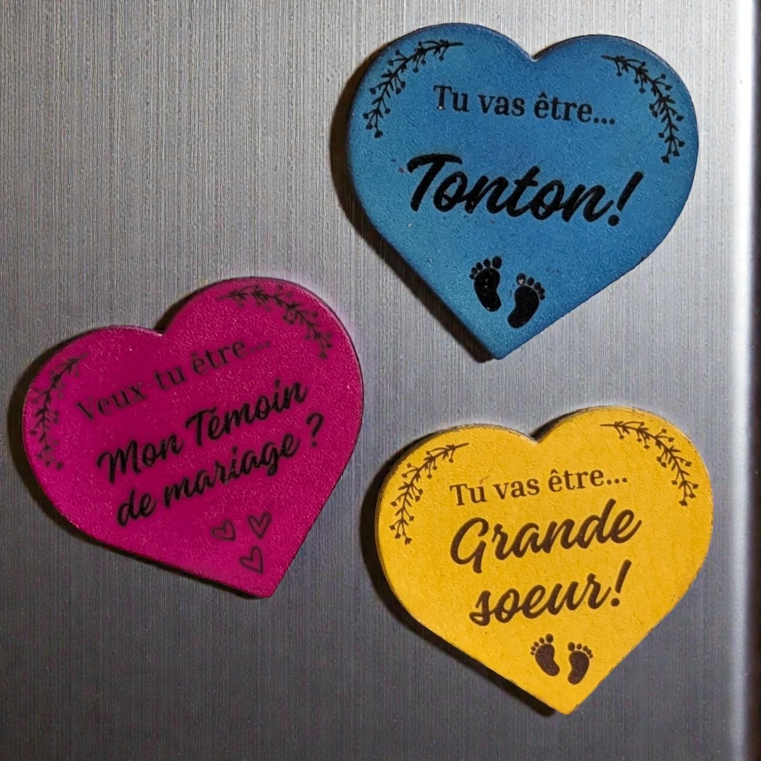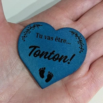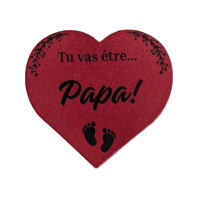Magnet artisanal en cuir, pour annoncer une bonne nouvelle.