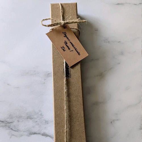 Possibilité d'ajouter une boite cadeau Kraft (option payante) avec une étiquette cadeau personnalisée