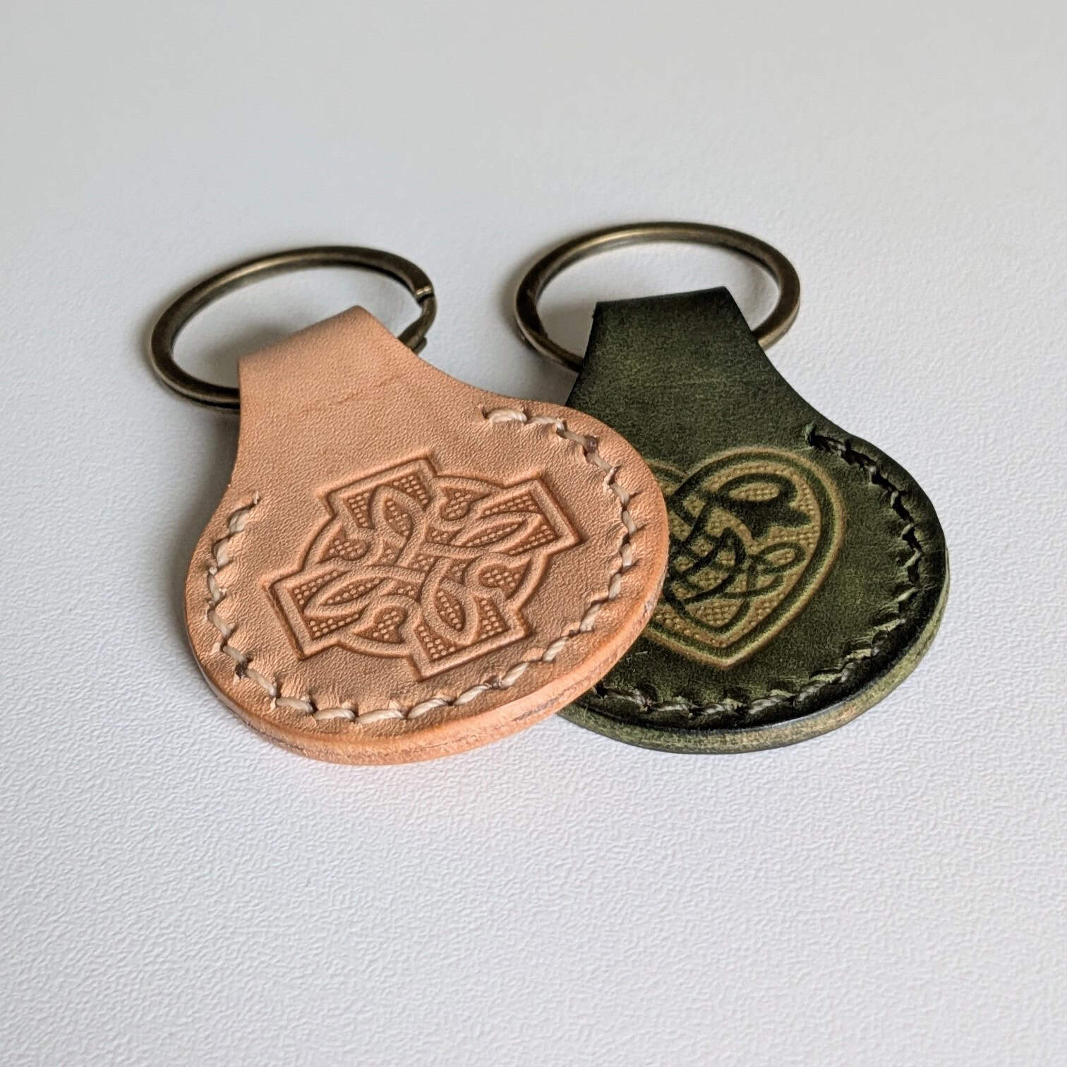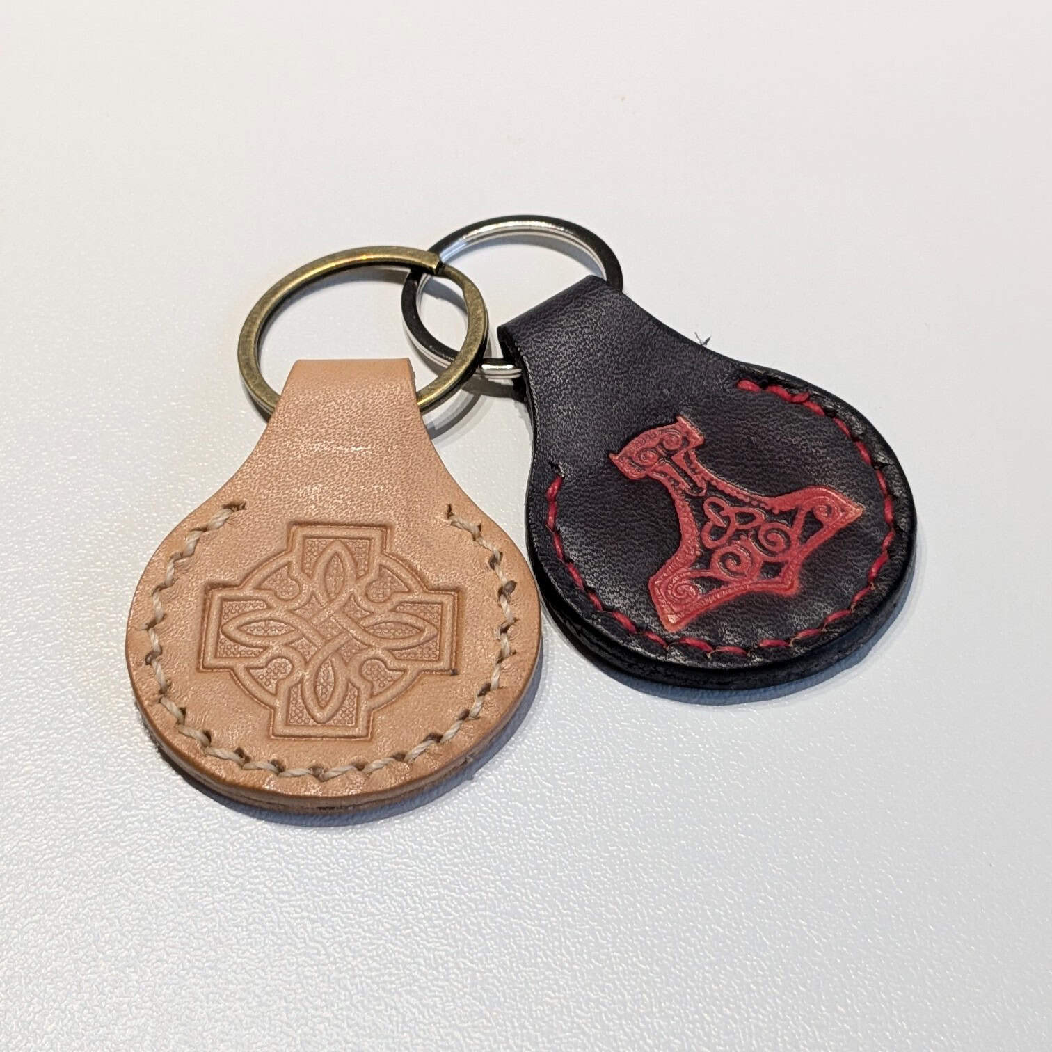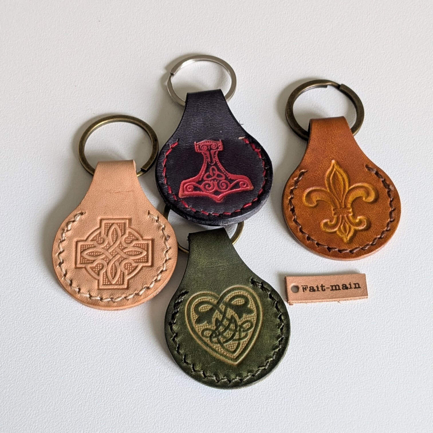 Porte-clé en cuir symbole médiéval, embossage et teinture à la main