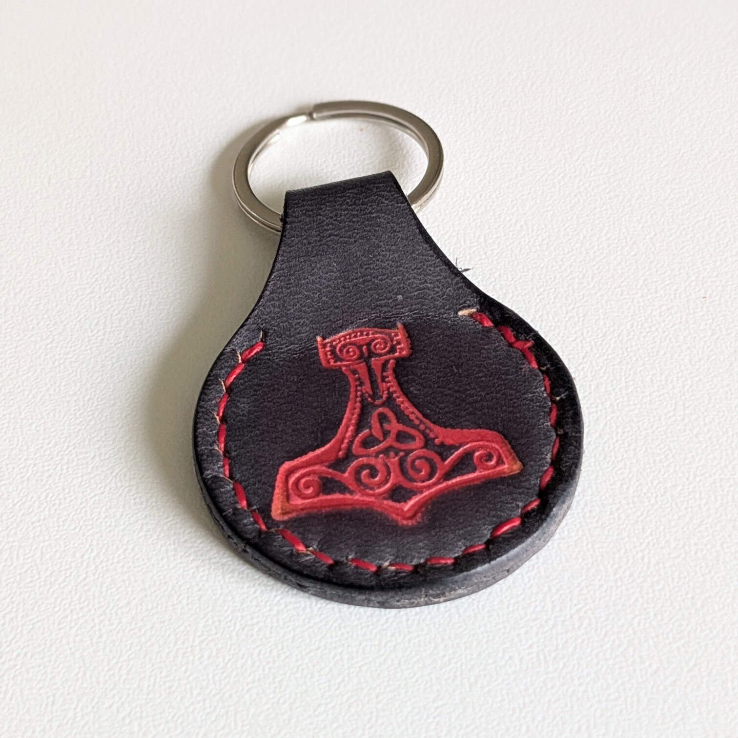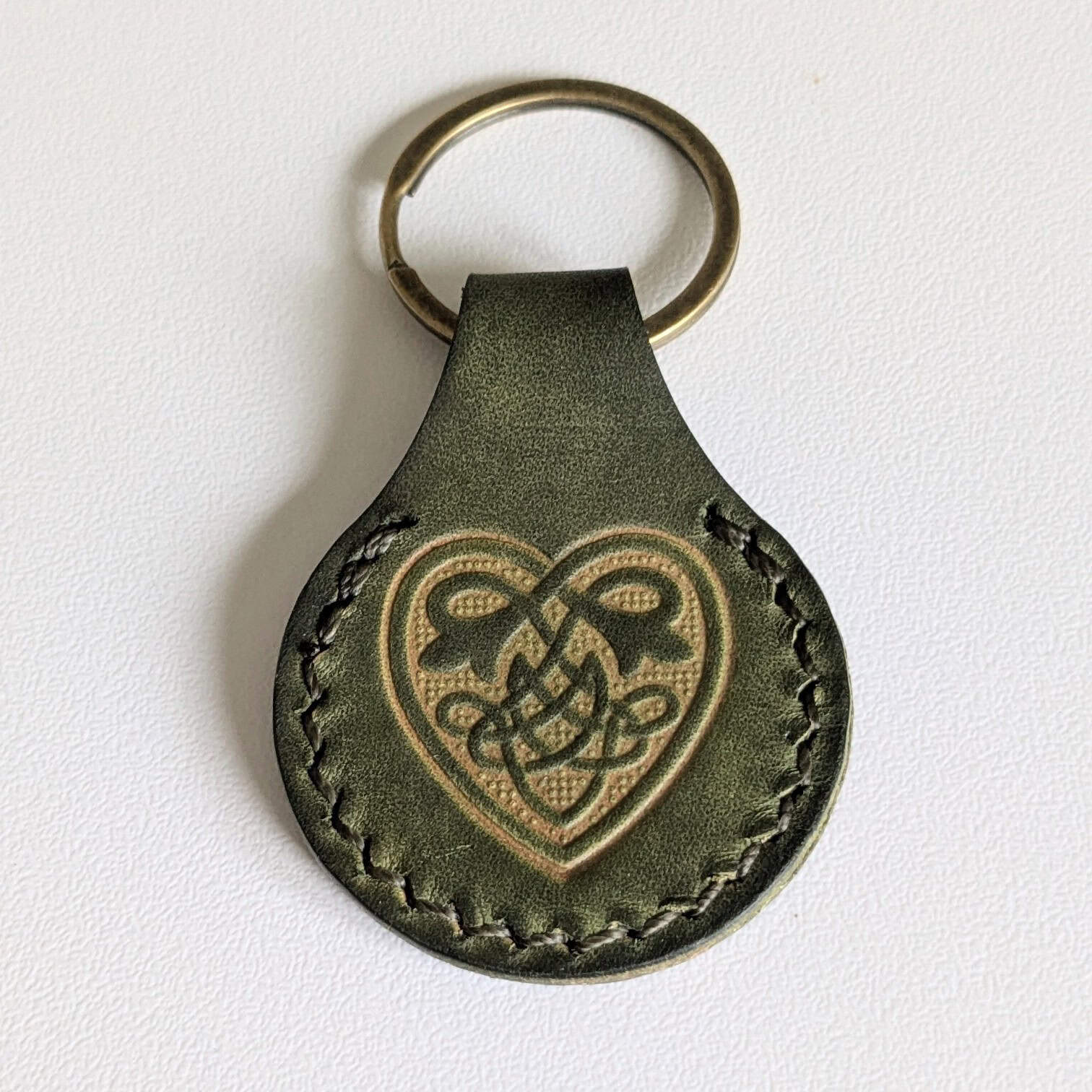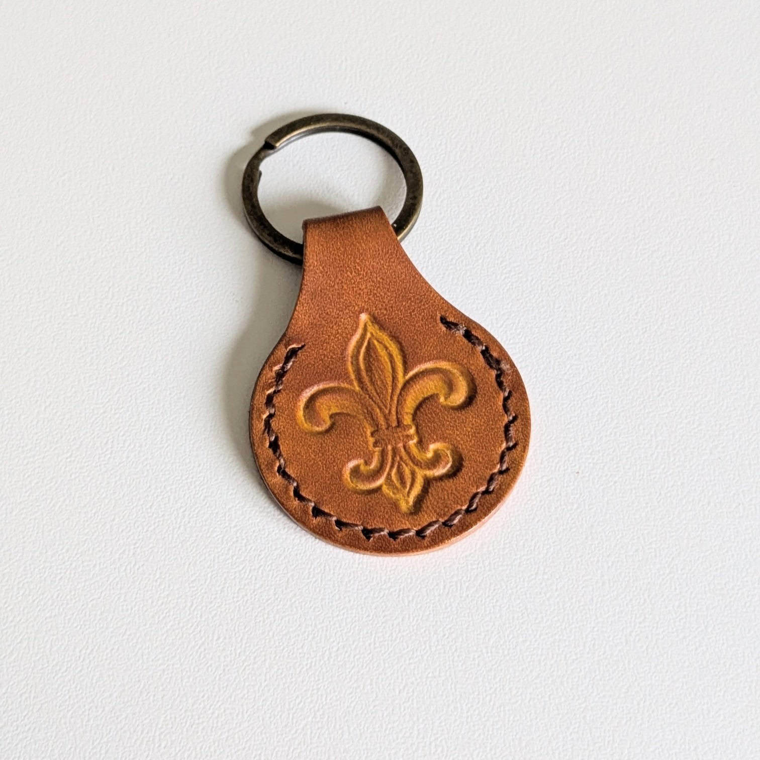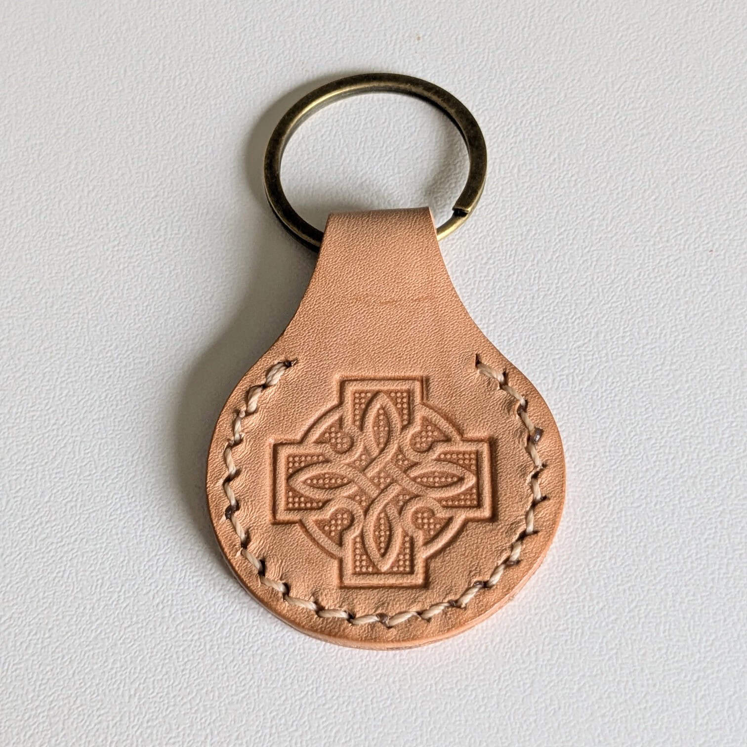 Porte-clé en cuir symbole médiéval, embossage et teinture à la main